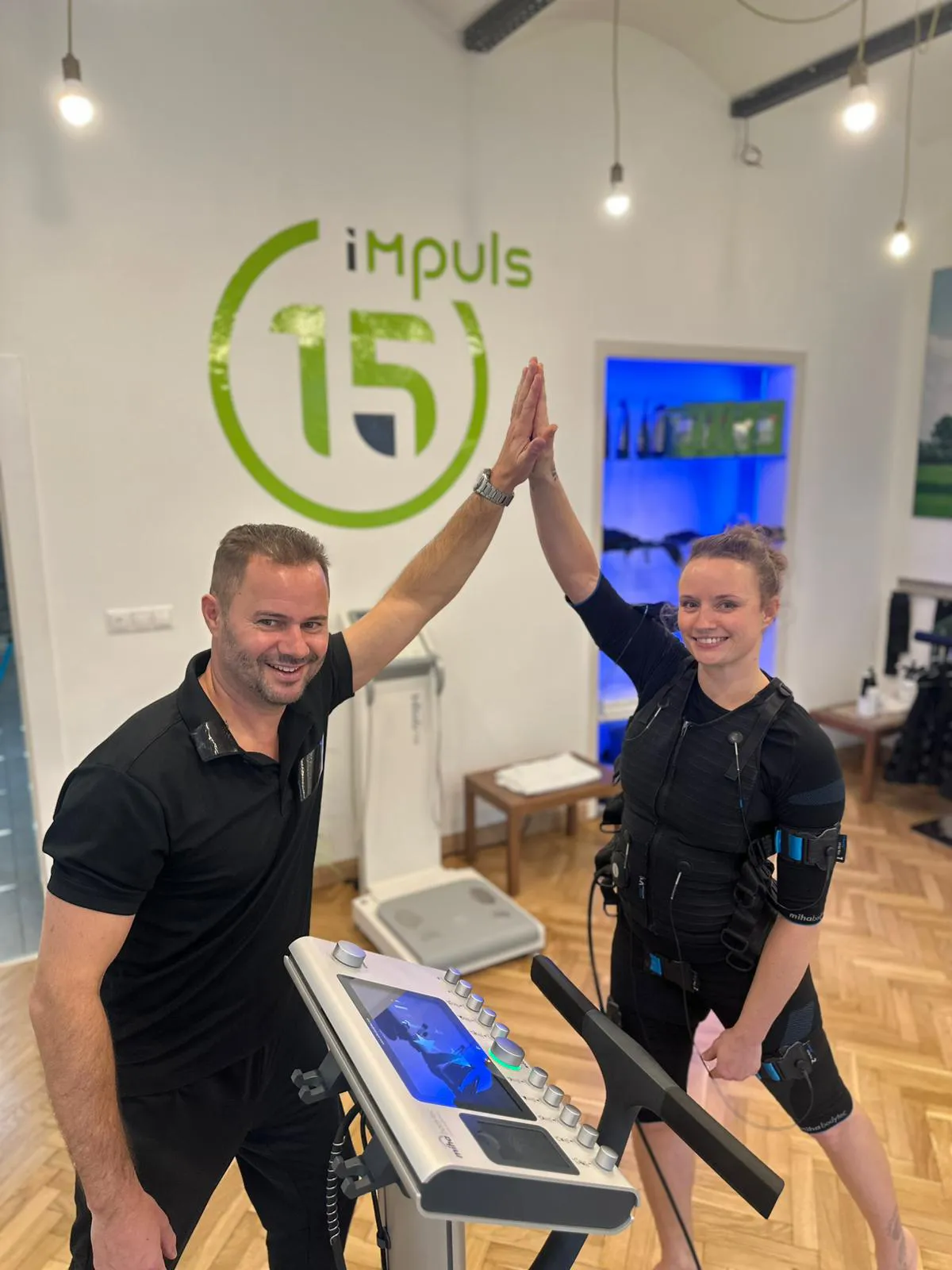 Mit EMS (Elektrische-Muskel-Stimulation) trainierst du gezielt und effizient. Dabei werden durch sanfte elektrische Impulse alle großen Muskelgruppen gleichzeitig aktiviert – wesentlich tiefer und intensiver als bei einem herkömmlichem Training. In Rekordzeit von nur 15 Minuten pro Woche erreichst du spürbare Erfolge.